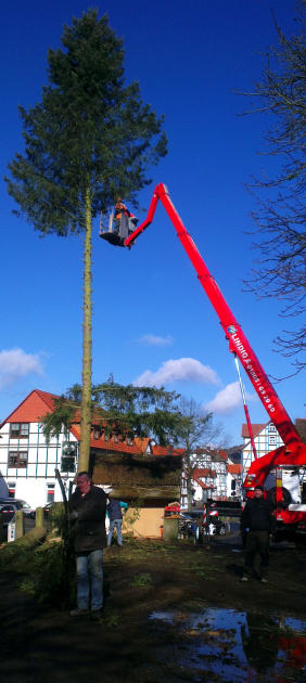 Nach den Arbeiten am Samstag den 28.2.2015, es wurde richtig aufgeräumt und zwei wichtige Punkte wurden abgearbeitet. 1. Drei Bäume fällen, Kastanie auslichten, zwei Stahlträger einziehen. Am nächsten Montag war dann wieder die Lehmbautruppe im Einsatz und baute den vorhandenen Lehm, nachdem er durchgesiebt war, in drei weitere Deckenteile ein. Natürlich waren das weitere Freilegen von Wänden angesagt und einige der Deckenbalken konnten auch eingezogen werden. Eine Außenwand wurde so vorbereitet, das in Kürze eine Wand komplett erneuert werden kann.